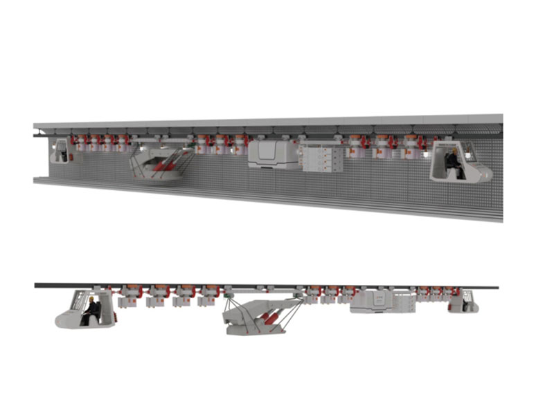 3.軌道懸掛于巷道頂 端,安裝、拆卸方便,不受底板條件限制;
